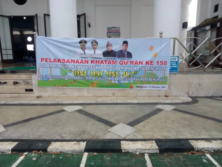 Kota Bengkulu, Mediasinardunia.com- Dinas Pendidikan Kota Bengkulu hari ini menggelar kegiatan pelaksanaan One Day One Juz Khatam Al-Qur’an Ke-150 Oleh Pengawas TK, PKG, Gugus TK se-Kota Bengkulu yang dimana kegiatan dilaksanakan di Masjid Agung At-Taqwa Anggut Kota Bengkulu. Rabu (13/10/21).