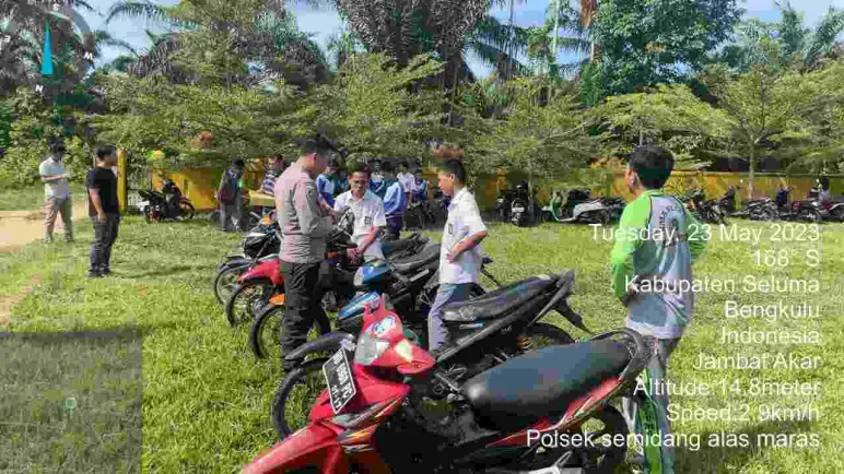 Seluma, Mediasinardunia.com - Penertiban sepeda motor knalpot Brong ini dilakukan dalam penempatan adanya laporan dan keluhan dari masyarakat yang resah akan suara yang kerap bising sehingga Kapolsek Semidang Alas Maras memerintahkan personelnya melakukan upaya menertibkan dan memberi efek jera kepada masyarakat dan para pelajar yang masih menggunakan Baja Brong dan menggelar giat razia Knalpot brong yang tidak sesuai peruntukannya di wilayah hukum Polsek SAM.