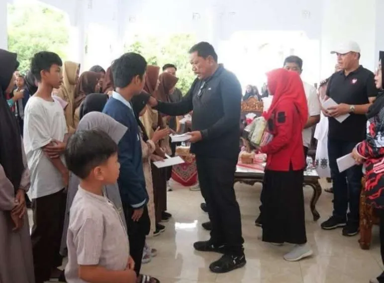 Arga Makmur, Mediasinardunia.com - Bupati Bengkulu Utara, Ir. H. Mian dan Ny. Eko Kurnia Ningsih Mian, memberikan santunan dan bingkisan kepada 105 anak yatim piatu di Balai Daerah pada Jumat (14/02/2025). Acara ini merupakan inisiatif pemerintah daerah untuk memberikan perhatian dan dukungan kepada anak-anak yatim piatu di Kabupaten Bengkulu Utara.