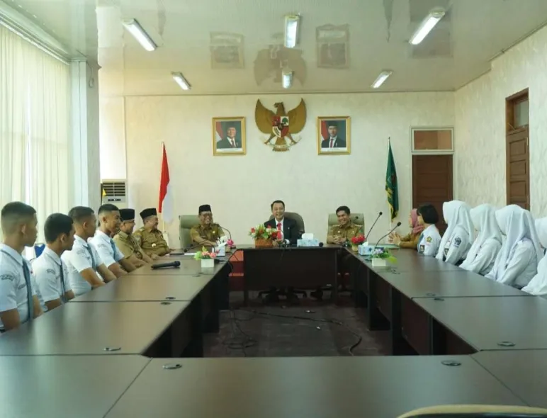 Rejang Lebong, Mediasinardunia.com - Sebanyak sepuluh pelajar terbaik Kabupaten Rejang Lebong resmi dilepas untuk mengikuti seleksi Calon Pasukan Pengibar Bendera Pusaka (Paskibraka) tingkat Provinsi Bengkulu tahun 2025. Prosesi pelepasan digelar di Kantor Bupati pada Senin, 5 Mei 2025, dan dipimpin langsung oleh Bupati HM Fikri Thobari, SE, MAP. Turut hadir dalam acara tersebut Wakil Bupati Dr. H. Hendri Praja dan Sekretaris Daerah Yusran Fauzi.