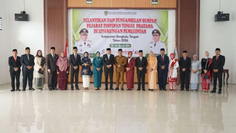 Bengkulu Tengah, Mediasinardunia.com – Pemerintah Kabupaten Bengkulu Tengah kembali melakukan penyegaran birokrasi melalui rotasi dan pelantikan Pejabat Pimpinan Tinggi Pratama, yang secara langsung dilantik dan diambil sumpah jabatannya oleh Bupati Bengkulu Tengah Drs. Rachmat Riyanto, S.T., M.AP., bertempat di Pendopo Bukit Kandis, Senin (05/01/2026).
