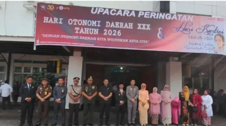 Kaur, Mediasinardunia.com – Wakil Bupati Kaur, Abdul Hamid, memimpin upacara peringatan Hari Otonomi Daerah yang dirangkaikan dengan peringatan Hari Kartini. Kegiatan tersebut berlangsung di halaman Kantor Bupati Kaur, pada Senin (27/4/2026).