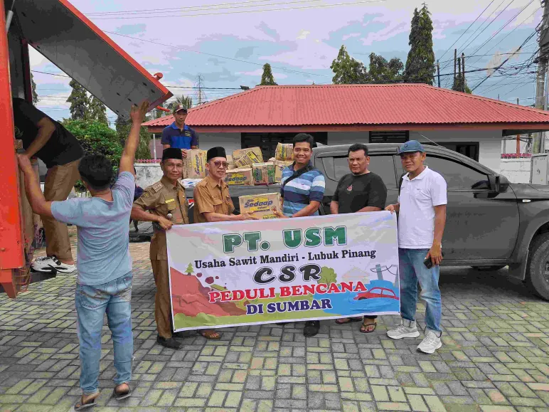 Pihak perusahaan yang diwakili oleh Manajer PT USM, bersama dengan tim Humas perusahaan, melaksanakan kegiatan penyaluran bantuan dana Corporate Social Responsibility (CSR) berupa paket sembako; bantuan ini diperuntukkan bagi saudara-saudara masyarakat yang terkena dampak bencana alam di Provinsi Sumatera Barat, serta juga menjadi bentuk kepedulian terhadap kondisi serupa yang terjadi di Provinsi Sumatera Utara dan Aceh.