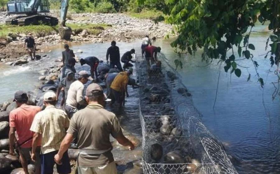 Bintuhan, Mediasinardunia.com - Pembangunan breakwater (pemecah ombak) di Pelabuhan Pantai Pasar Lam