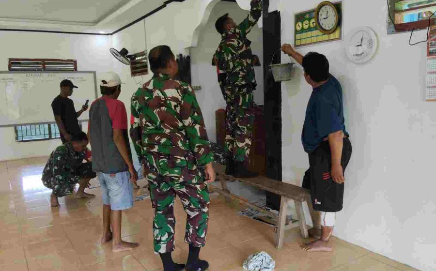 HUT ke-80 TNI, Kodim 0428/Mukomuko Gelar Giat Baksos Pembersihan Pengecatan dan Rehab Masjid Al-Muhajirin