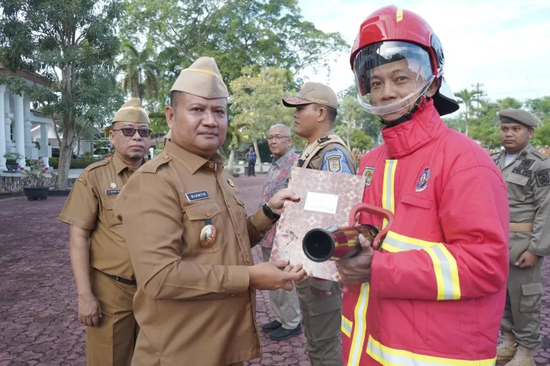 Lebih lanjut, Wakil Bupati juga menyerahkan perlengkapan baru kepada petugas Pemadam Kebakaran (Damkar). Baliau menyampaikan harapan agar kinerja Damkar semakin meningkat dan profesional dalam melayani masyarakat.