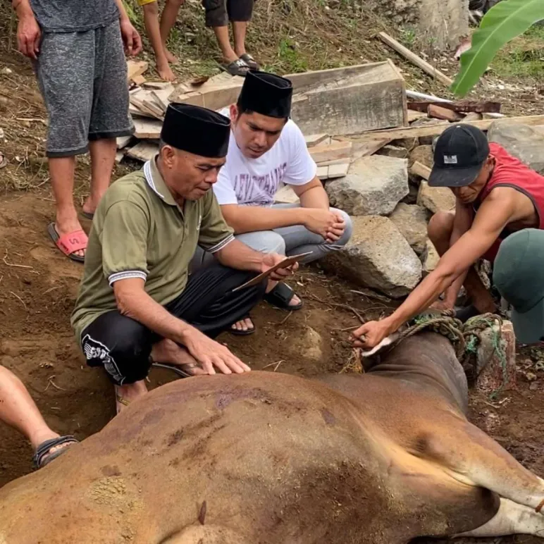 Rejang Lebong, Mediasinardunia.com - Suasana khidmat menyelimuti area belakang Masjid Al Huda, Desa Apur, Kecamatan Sindang Beliti Ulu, pada Jumat sore, 6 Juni 2025. Wakil Bupati Rejang Lebong, Dr. H. Hendri Praja, SSTP, M.Si., secara langsung menyembelih satu ekor sapi kurban miliknya.