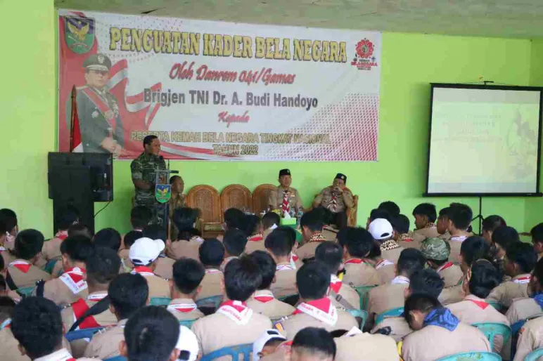 Bengkulu, mediasinardunia.com - Danrem 041/Gamas Brigjen TNI Dr. A. Budi Handoyo, memberikan kuliah umum kepada peserta Pramuka dari seluruh Provinsi se Indonesia, bertempat di desa Srikaton Kec.Pondok Kelapa Bengkulu Tengah , Selasa (20/12/2022)
