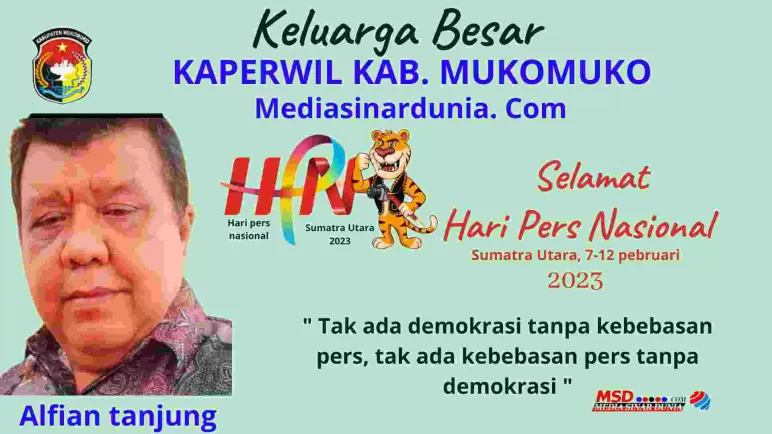 Banner Keluarga Besar Kaperwil kab Mukomuko, Mengucapkan Selamat Hari Pers Nasional (HPN)yang Selenggarakan 7-12 februari 2023, Di medan Sumatra Utara, 8 Feb 2023 04:01 Submitted by webadmin on 8 February 2023 Mukomuko Berita Terkait Apr 20, 2026 Segenap Tenaga Medis dan Staf RSUD Kabupaten Mukomuko Mengucapkan Selamat Hari Kartini Feb 26, 2026 Kepala Dinas PUPR Mukomuko Mengucapkan Selamat Hari Jadi Kabupaten Mukomuko yang ke-23 Feb 25, 2026 Dinas pertanian kabupaten Mukomuko mengucapkan selamat hari jadi kabupaten Mukomuko ke - 23 Tahun 2026 Feb 24, 2026 Dinas pendidikan dan kebudayaan sekolah SD negeri 04 air Manjuto Kabupaten Mukomuko Mengucapkan Dirgahayu Kabupaten Mukomuko Ke - 23 Feb 18, 2026 Sekda Kabupaten Mukomuko Mengucapkan Selamat Hari Jadi Kabupaten Mukomuko yang Ke-23 Feb 17, 2026 Dinas Pendidikan dan Kebudayaan SDN 14 Penarik Kabupaten Mukomuko Mengucapkan Dirgahayu Kabupaten Mukomuko yang Ke-23