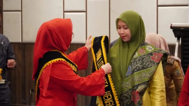 Khairunnisa yang juga merupakan Ketua TP-PKK Kota Bengkulu menerima pemasangan selempang dari Bunda Literasi Provinsi Bengkulu Derta Rohidin sebagai tanda dikukuhkannya sebagai Bunda Literasi Kota Bengkulu.