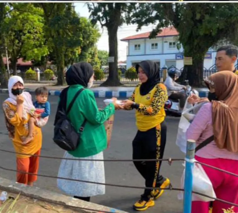 Terlihat Kasat Binmas Polresta Bengkulu AKP Yulita Widayanti, Kasi Humas Iptu Nurlaila, S.sos, Kasat Tahti Iptu Zainuri Rusda, S.I.P, beserta personel Sat Binmas dan Si Humas Polresta Bengkulu membagikan Nasi Kotak.