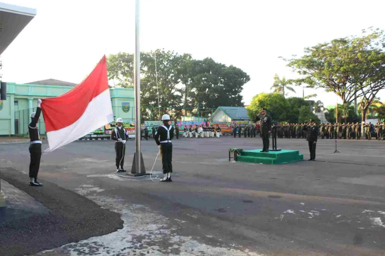 Dalam pelaksanaan upacara ini Danrem yang diwakili oleh Kasrem 041/Gamas membacakan amanat Panglima TNI Laksamana TNI Yudo Margono, S.E,, M.M diakhir amanatnya selaku Panglima TNI menyampaikan saat ini banyak sekali upaya sistematis dan terus menerus yang dilaksanakan oleh para oknum untuk menggerus nilai - nilai Pancasila. Seperti halnya munculnya fenomena intoleransi dan polarisasi ditengah masyarakat selain itu perbedaan Suku, Agama, Ras dan Golongan juga terus diangkat guna memecah belah persatuan dan kesatuan bangsa. Oleh karena itu pada kesempatan yang baik ini saya ingin berpesan kepada seluruh prajurit untuk selalu menjaga dan melestarikan nilai - nilai Pancasila.