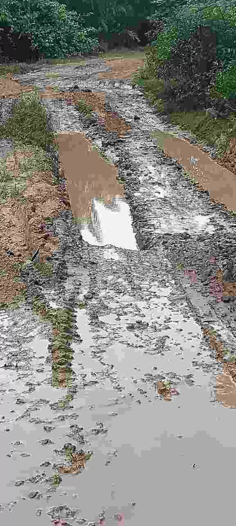 sangatlah parah sementara ketika wartawan mediasinardunia.com ketika melewati jalan tersebut dengan kendaraan roda dua sangat tidak layak untuk dilewati yang mana terdapat lobang yang sangat dalam apalagi kalau dilewati ketika hujan akan sangat memperparah keadaan maka dari itu harapan dari beberapa tokoh masyarakat meminta kepada pemerintah untuk memperhatikan jalan tersebut agar segera ditindak lanjuti . (ATJ)