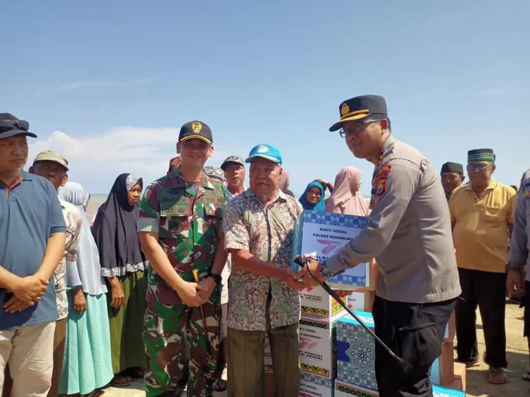 Diketahui dalam kegiatan tersebut Kapolres Mukomuko memberikan secara langsung bantuan berupa sembako kepada puluhan warga yang kurang mampu di Desa Pasar Ipuh.