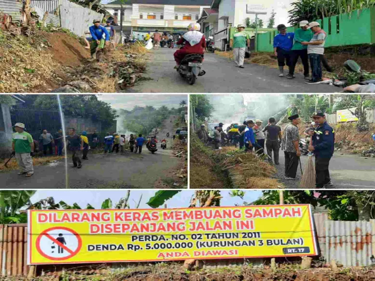 Peduli Lingkungan, Bhabinkamtibmas, Babinsa dan Warga Gotong Royong Bersihkan Sampah dan Pasang Imbauan