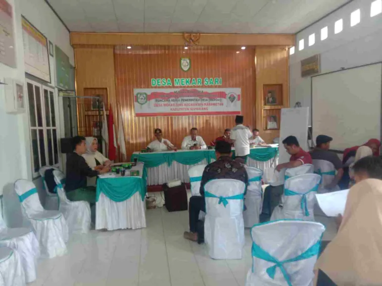 Acara (RKPDes) di balai desa mekarsari padah hari jumat 4/8/2023 kades menerangkan tentang perencanaan untuk thn 2024 mula dari pembangunan inpra struktur sampai degan kegiatan stunting dan kegitan lain,seperti TPT,drainase atau pun irigasi,dan kegitan kegitan desa yang lain seperti Tk Posyandu atau pun kegitan kegiatan yang menyangkut kegitan desa mekarsari.