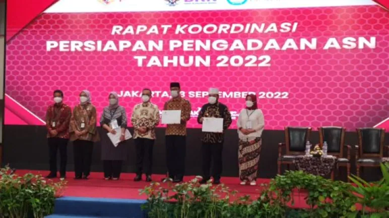 Bengkulu – Mediasinardunia.com - Walikota Bengkulu Helmi Hasan didampingi Sekda Arif Gunadi dan Kepala BKPP Achrawi mengikuti rapat koordinasi (Rakor) persiapan pengadaan ASN tahun 2022 dan penyerahan surat keputusan (SK) menteri PAN RB tentang penetapan kebutuhan pegawai ASN di lingkungan instansi pemerintah yang berlangsung di Ruang Puri Agung, Hotel Sahid Jakarta, Selasa (13/9/2022).