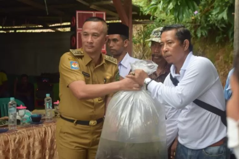 Bantuan berupa 204 pis jaring, 400 bubu kepiting, 105 ribu bibit ikan lele diserahkan langsung oleh Asisten II Saipul Apandi, Ketua Komisi II DPRD Nuzuludin, Kadis DKP Tarzan Naidi yang berlangsung di jalan Jenggalu 3 RT, Kelurahan Lingkat Barat, Selasa (12/7/2022) pagi.