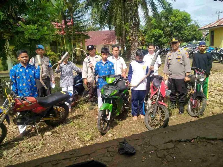 Penggunaan Knalpot Brong oleh Pelajar Berhasil Diamankan di Mako Polsek Lubuk Pinang.