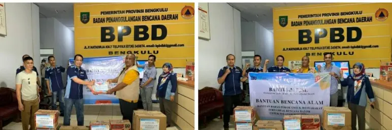 Penyerahan Bantuan dari Perusahaan Perdagangan Indonesia Kepala BPBD provinsi Bengkulu