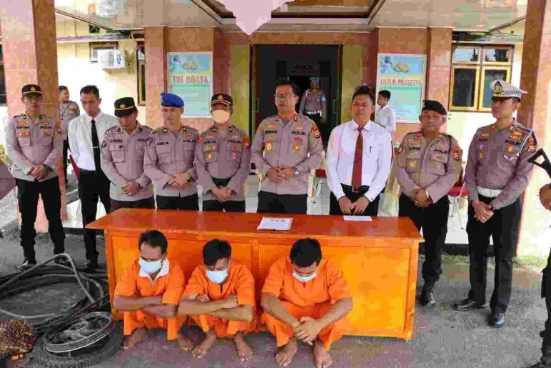 "Dari tangan Pelaku inisial NG, Tim berhasil mengamankan 1 buah Shock motor dan 1 Buah Ban Motor dan dari tangan pelaku inisial C dan P berhasil diamankan 1 buah Kabel tembaga ukuran 21 Meter dan 1 unit motor Honda Beat" Terang AKBP Nuswanto, S. H.,. S. IK., M. H