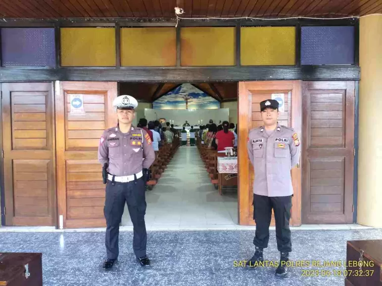Polres Rejang Lebong, Laksankan Pengamanan Ibadah Minggu di Gereja Katolik Santo Stefanus Martir