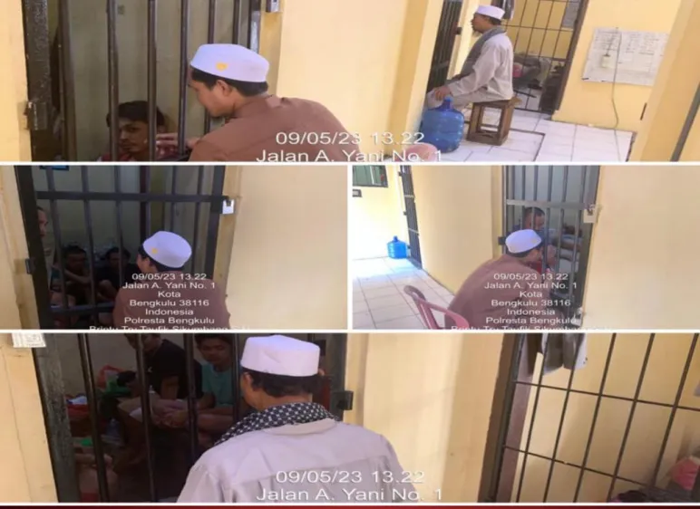 Kota Bengkulu, Mediasinardunia.com - Selasa, (09/05/2023) Polresta Bengkulu melalui Sat Tahti Polresta Bengkulu Polda Bengkulu, kembali melakukan Kegiatan Bimbingan Rohani dan Mental (Binrohtal) kepada tahanan Polresta Bengkulu di Masjid At-Taqwa Kelurahan Anggut Kota Bengkulu.