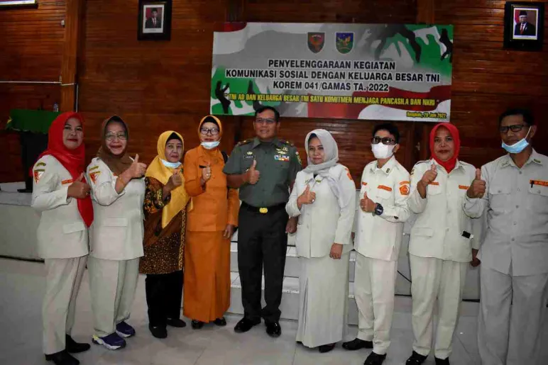 Pada kesempatan ini Danrem 041/Gamas dalam sambutannya menyampaikan rasa hormat dan apresiasi atas kehadiran keluarga besar TNI. Pertemuan semacam ini bertujuan untuk mempererat hubungan silaturahmi antara Korem 041/Gamas dengan keluarga besar TNI, karena kita ini keluarga yang pernah dilahirkan dari Sapta Marga dan Sumpah Prajurit sehingga ikatan emosional ini tetap terjaga, pada saat sekarang ini banyak informasi-informasi Hoaks yang beredar bahkan tidak dapat dipertanggungjawabkan yang nantinya akan dapat mengganggu stabilitas oleh karena itu kita tetap berpegang teguh dengan Sapta Marga dan Sumpah Prajurit serta berkomitmen menjaga Pancasila dan NKRI.