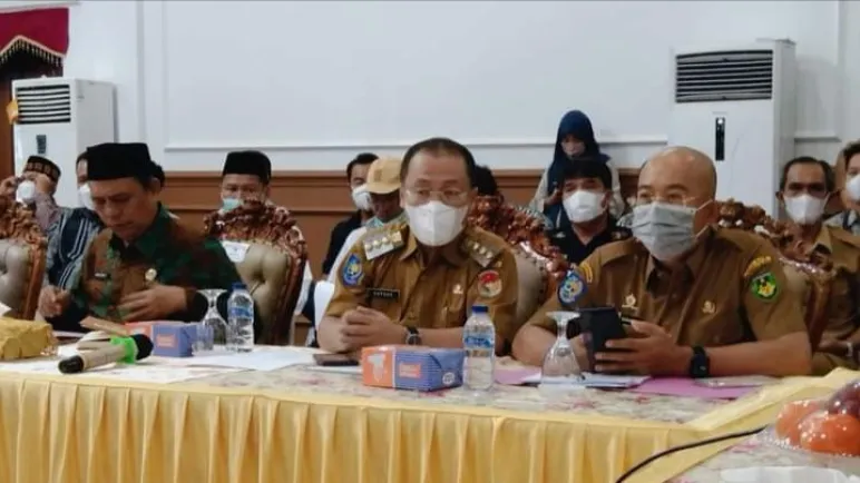 Bengkulu - Mediasinardunia.com - Dalam rapat koordinasi yang diikuti oleh Bupati Bengkulu Selatan Gusnan Mulyadi terkait Penetapan Harga Tandan Buah Segar (TBS) Kelapa Sawit Periode Mei 2022 didapatkan beberapa poin kesepakatan. Rakor yang dipimpin Gubernur Bengkulu Rohidin Mersyah serta melibatkan seluruh Bupati/Walikota Se-provinsi Bengkulu dan Pelaku usaha bidang perkebunan serta pengolahan kelapa sawit yang ada di Provinsi Bengkulu ini dilaksanakan di Gedung Daerah Balai Raya Semarak, Selasa (17/5/22).