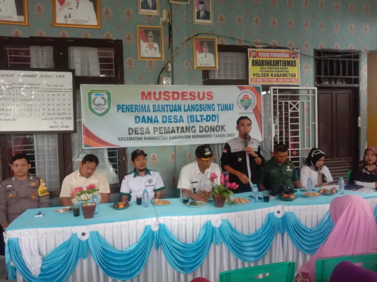 Kepahiang - Mediasinardunia.com - Pemdes pematang Donok kecamatan kaba wetan Gelar (musdesus) musawarah desa khusus calon penerima bantuan langsung tunai BLT-DD tahun 2023.