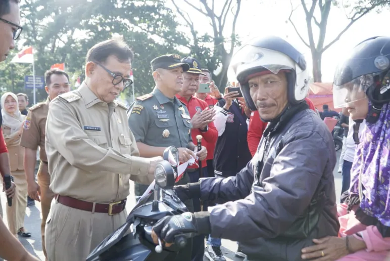 Kepahiang - Mediasinardunia.com - Pemerintah Kabupaten Kepahiang turut mendukung Gerakan Pembagian 10 Juta Bendera Merah Putih yang diinisiasi oleh Dirjen Politik dan Pemerintahan Umum Kementerian Dalam Negeri. Dukungan tersebut diwujudkan dengan membagikan bendera merah putih kepada masyarakat yang diawali di Tugu Kopi Kepahiang pada Senin (31/7/23).