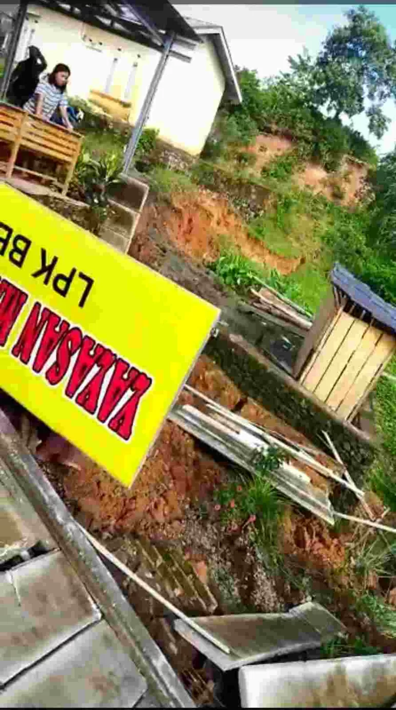 Hasil pemantawan mediasinardunia.com yang langsung turun kelapangan tempat kejadian Pondasi dapur rumah tinggi 2 meter panjang 10 meter roboh semua juga pondasi penahanan depan rumah pindah tempat akibat longsor tersebut.