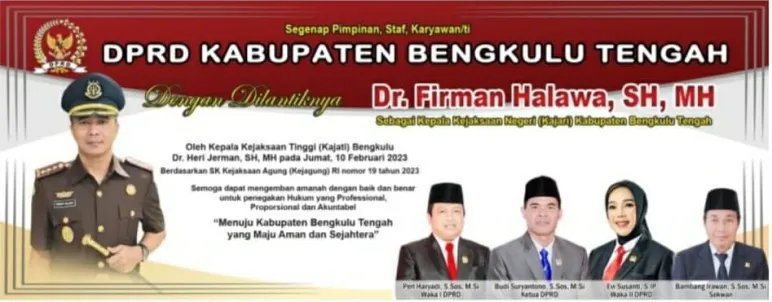 Segenap jajaran unsur dan pimpinan DPRD Kabupaten Bengkulu Tengah Dengan Dilantiknya Dr. Firman Halawa, SH,MH Sebagai Kepala Kejaksaan Negeri ( Kajari) Kabupaten Bengkulu Tengah 2023