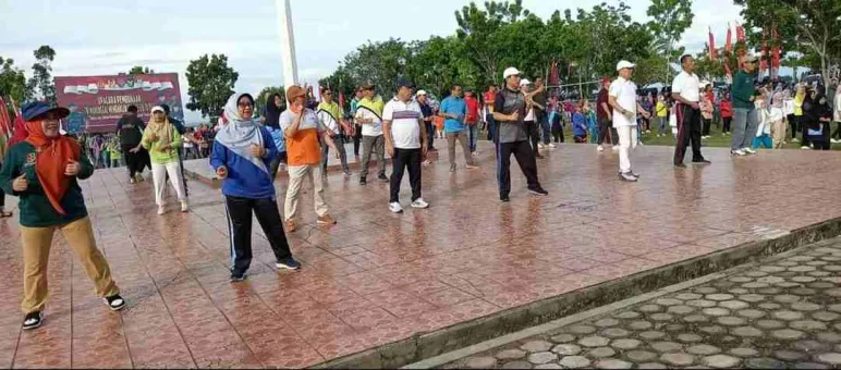 Seluma , Mediasinardunia.com- Wakil Bupati Seluma Drs. Gustianto, Sekretaris Daerah H. Hadianto, SE, MM, M.Si bersama Pimpinan Bank Bengkulu Cabang Tais beserta jajaran melaksanakan senam bersama, bertempat di Halaman Kantor Bupati Seluma. Jum'at.19/5/23.