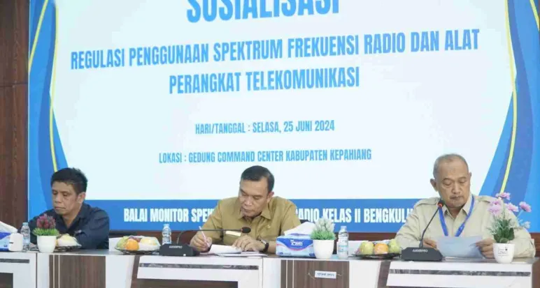Kepahiang, Mediasinardunia.com - Bersama Balai Monitor Spektrum Frekuensi Radio Kelas II Bengkulu di bawah naungan Kementerian Kominfo Republik Indonesia, pada Selasa, 25 Juni 2024, Pemerintah Kabupaten Kepahiang menyelenggarakan sosialisasi mengenai regulasi penggunaan spektrum frekuensi radio dan perangkat telekomunikasi. Tujuan dari sosialisasi ini adalah untuk menciptakan keteraturan dalam penggunaan frekuensi digital informasi di Kabupaten Kepahiang.