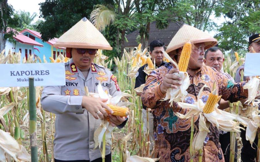 Kapolres Mukomuko Hadiri Panen Raya Program Tumpang Sari di Desa Maju Makmur untuk Dukung Swasembada Pangan