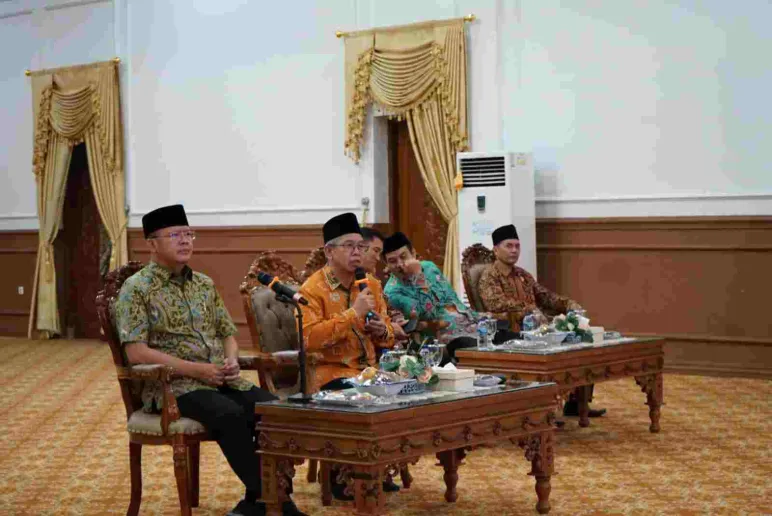 Bengkulu, Mediasinardunia.com - Gubernur Rohidin Mersyah melakukan video call untuk menyapa jamaah haji asal Provinsi Bengkulu, yang sedang menjalankan ibadah di Tanah Suci Mekkah, dari Balai Raya Semarak, Kamis (22/6).
