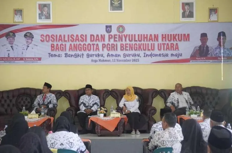 Argamakmur, Mediasinardunia.com – Wakil Bupati Bengkulu Utara, H. Sumarno S.Pd, membuka secara resmi sosialisasi dan penyuluhan hukum bagi anggota Persatuan Guru Republik Indonesia (PGRI) se-Kabupaten Bengkulu Utara di Gedung PGRI Argamakmur, Rabu (12/11/2025).