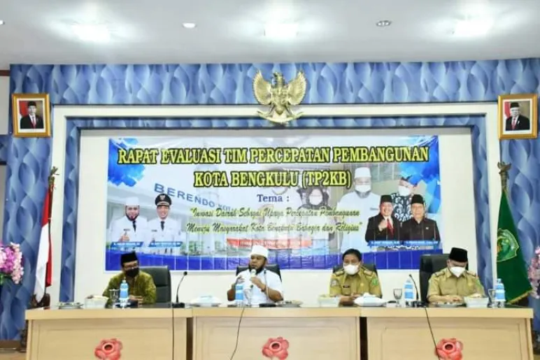 Kota Bengkulu, Mediasinardunia.com- Walikota Bengkulu Helmi Hasan didampingi Sekretaris Daerah Arif Gunadi, Kepala Bapelitbang Firman Romzie dan Ketua Tim Percepatan Pembangunan Kota Bengkulu (TP2KB) melakukan rapat evaluasi Tim TP2KB di Ruang Rapat Hidayah Kantor Walikota Bengkulu, Selasa (23/11/21).