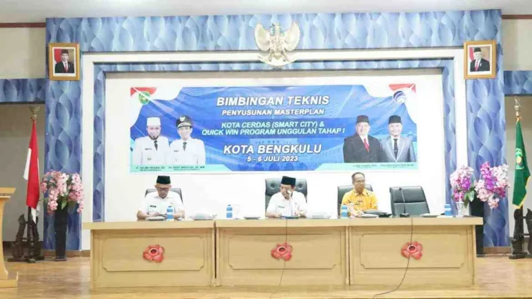 Bengkulu, Mediasinardunia.com -Pemerintah Kota (Pemkot) Bengkulu melalui Dinas Komunikasi dan Informatika (Kominfo) menggelar Bimbingan Teknis (Bimtek) penyusunan Masterplan Smart City dan Quick Win Program Unggulan tahap 1 yang berlangsung di ruang Hidayah I, kantor Walikota, Rabu (5/7/2023)